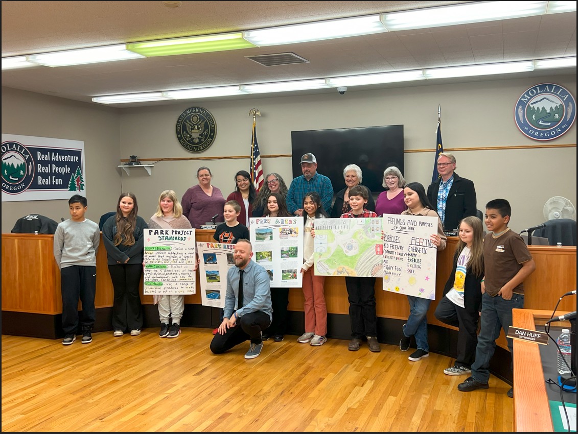 Molalla Elementary 5th Graders from Mr. Hewitt's class came to the March 13, 2024, City Council meeting to present their Parks Project. The Parks Project covered a range of topics including, Park Project Standards, Park Designs, and mapping. Several of the children spoke about how important parks are to them and what they learned participating in the project. The children and their parents were invited to attend Parks Community Program Committee (CPC) meetings. If you would like to view the meeting and the children's presentation, please go to https://www.facebook.com/MolallaCityCouncil and view the March 13 meeting. We are proud of these dreamers and future leaders!