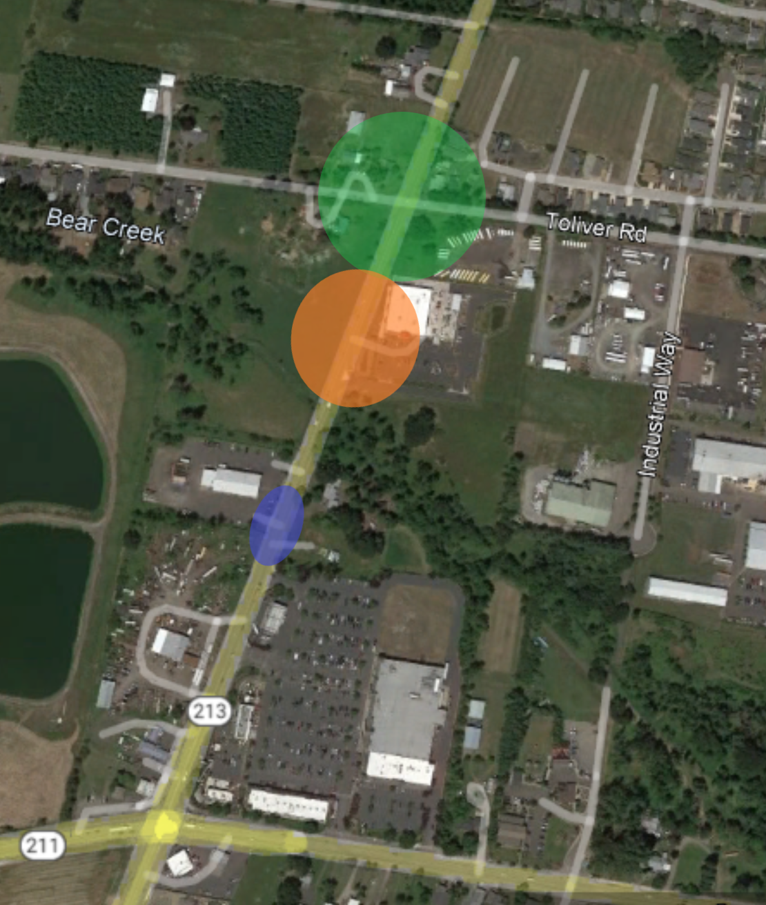 El tráfico con dirección Este en Toliver Road que se dirige a OR 213 puede dirigirse al Norte en South Dryland Road y dar vuelta a la derecha hacia South Barnards Road, o dirigirse hacia el Sur en South Dryland Road y dar vuelta a la izquierda hacia OR 211/Main Street.