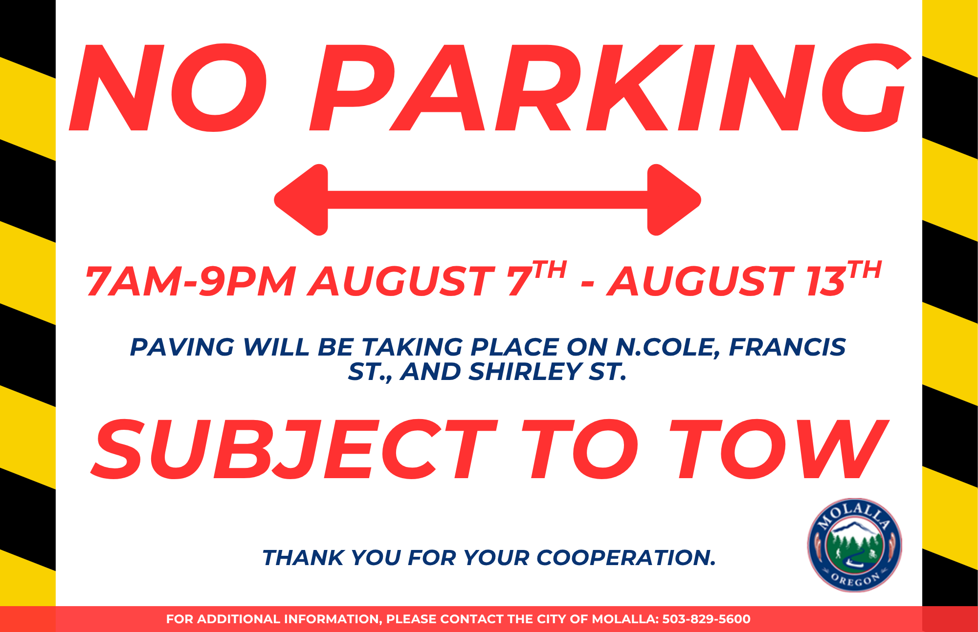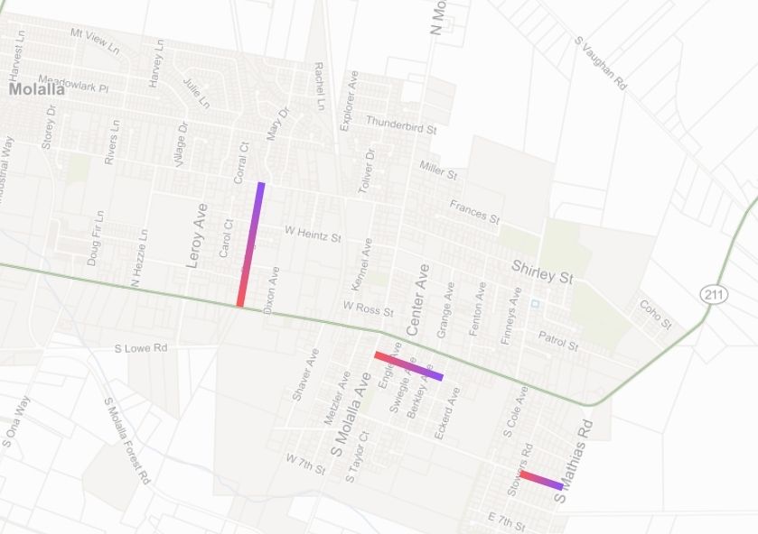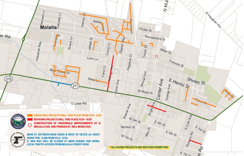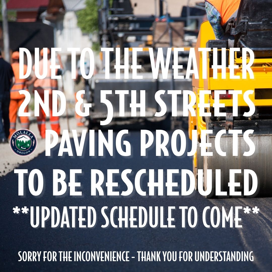 Paving will include the following streets: N Cole Ave, France St, Shirley St, 5th St (between Mathias and Stower Rd), E 2nd Ave (between S Molalla Ave and Lola Ave), and Ridings Ave.