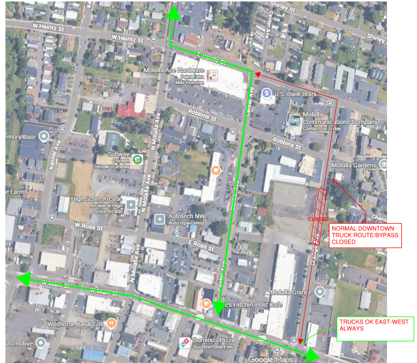 Alert! Roadwork projected to begin in June on the North side of OR-211 between Molalla Forest Rd. and Hezzie Ln. Please see the attached map for pedestrian and vehicle routing during the project.